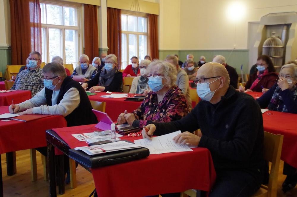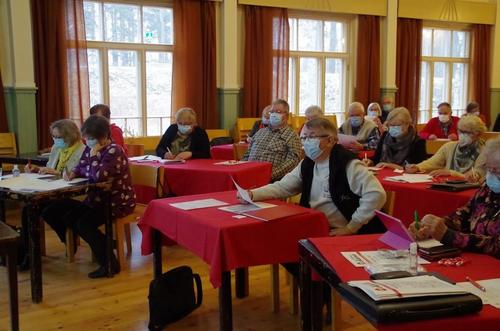 Tuokiokuvia piirimme yhdistetystä kevät- ja syyskokouksesta Lievestuoreen työväentalolla 27.11-2020.