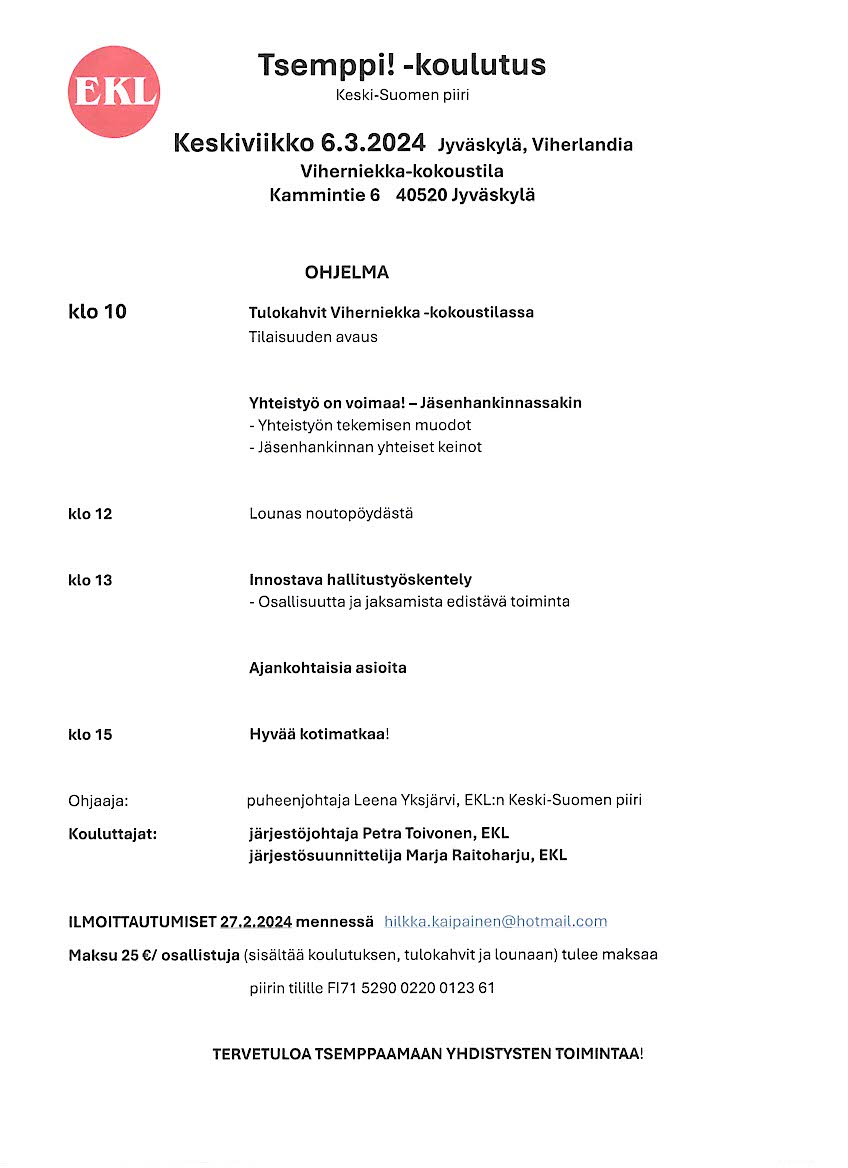 EKL:n Keski-Suomen piirin yhdistysten puheenjohtajat 2025