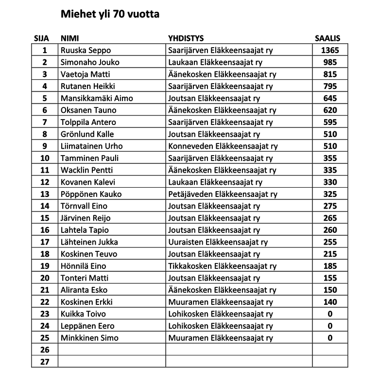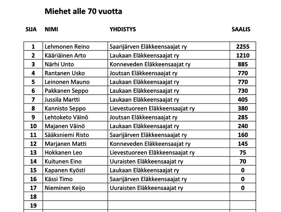 Piirin pilkkikisan tulokset kisoista to 22.03.2018 Saarijärven Pikku-Lumperoisella.
