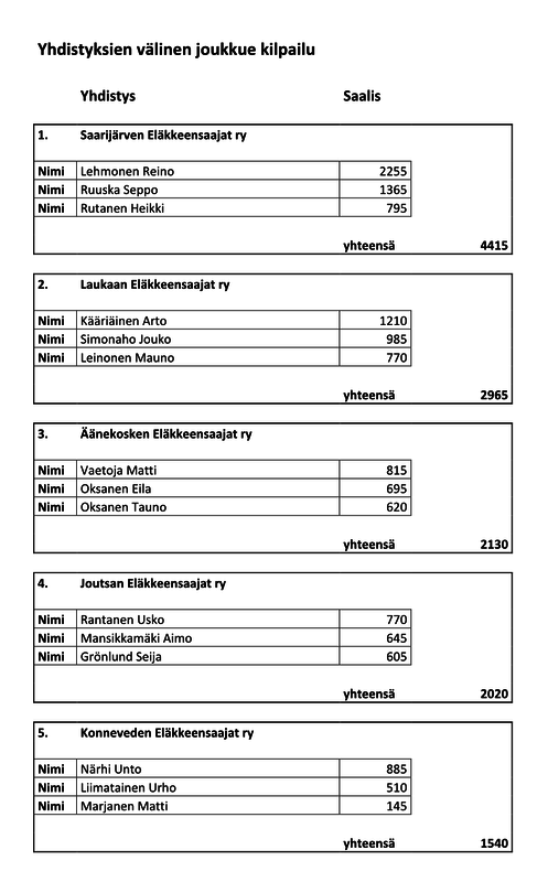 Piirin pilkkikisan tulokset Joutsan Pappisissa 15.03.2017 kisoista.